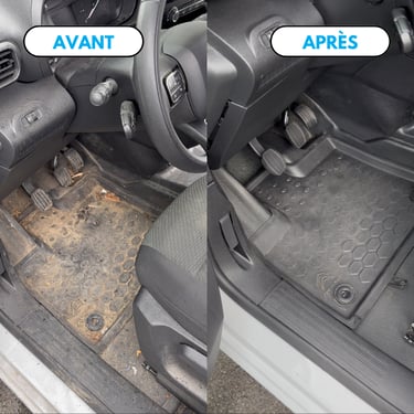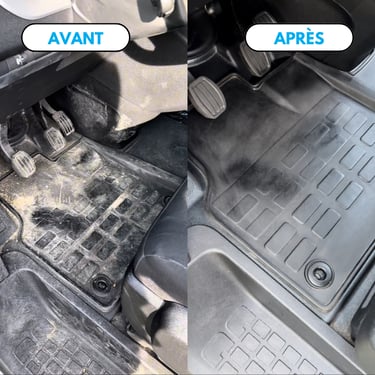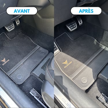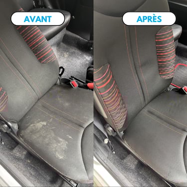Les sièges et moquettes sont traités en profondeur à l’aide d’un injecteur-extracteur, permettant de retirer taches et mauvaises odeurs.