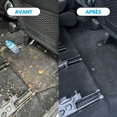 Le nettoyage intérieur commence par une aspiration complète de l’habitacle, des sièges, tapis et moquettes afin d’éliminer poussières et déchets.